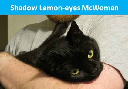 Meet Shadow Lemon-eyes McWoman, our spokescat for black cats. You can call her Shadow.